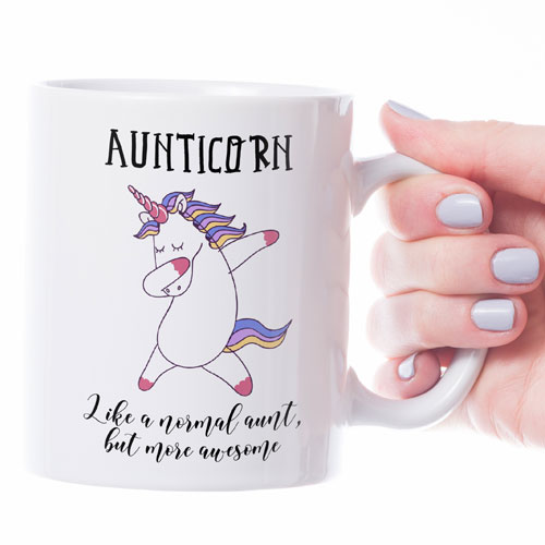 Mătușile cool merită o cană pe măsură! Cana “Aunticorn” aduce un strop de magie și voie bună în fiecare dimineață, reamintindu-i mătușii tale că este pur și simplu fabuloasă.