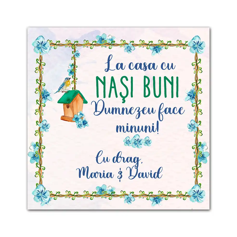 Personalizată cu fotografia și mesajul tău, devine un cadou unic – perfect pentru aniversări, cununie, botez sau orice moment special împărtășit alături de nasi.