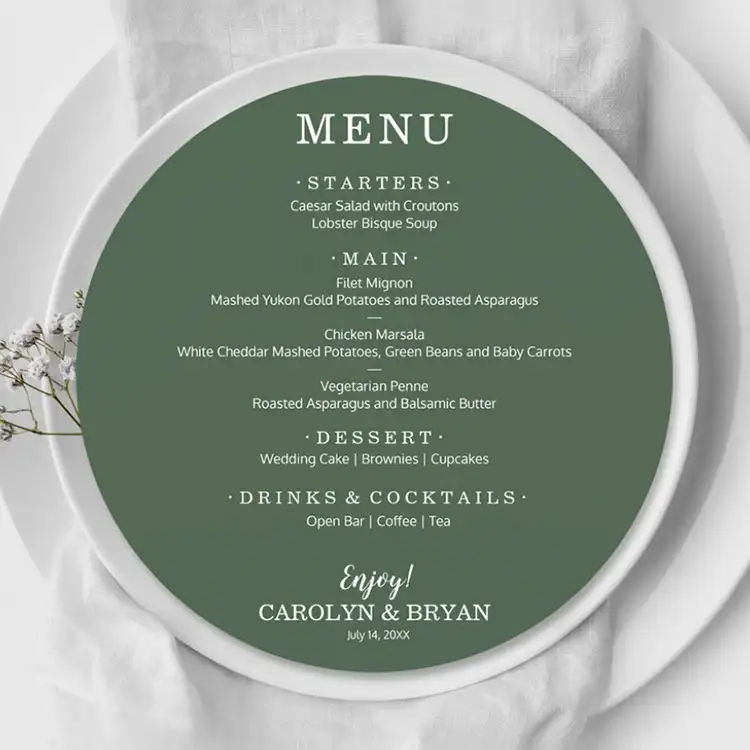Meniul se realizeaza din carton alb de 230gr/mp.