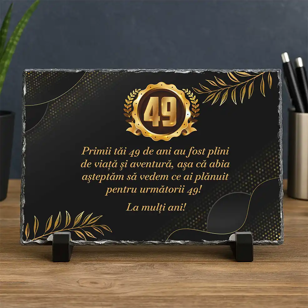 Placa de ardezie aniversară este un cadou elegant și durabil, realizat din piatră naturală de ardezie, cu margini neregulate care îi conferă un aspect autentic și rustic. Imaginea sau mesajul ales este imprimat cu grijă printr-un proces special de sublimare, oferind culori vii și rezistență în timp.