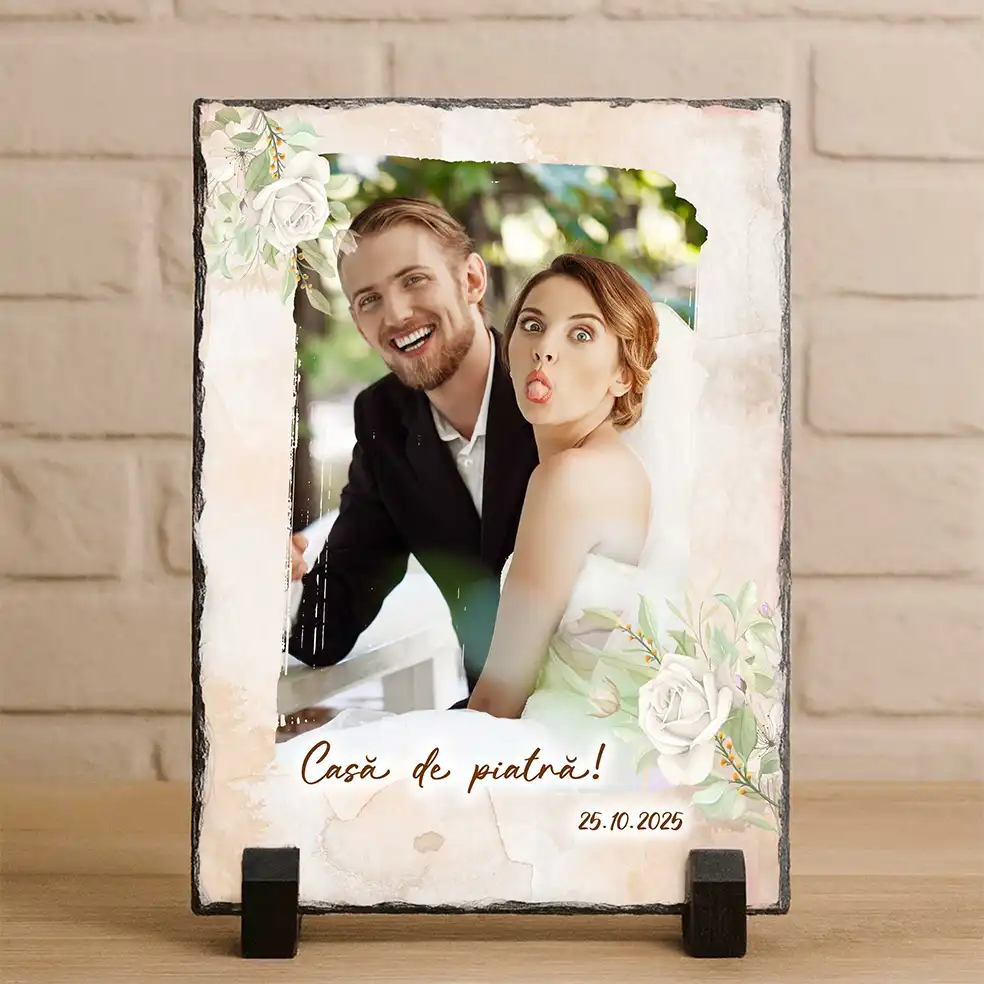 Poate fi personalizată cu fotografia mirilor si data nunții, transformând-o într-o amintire de neuitat.